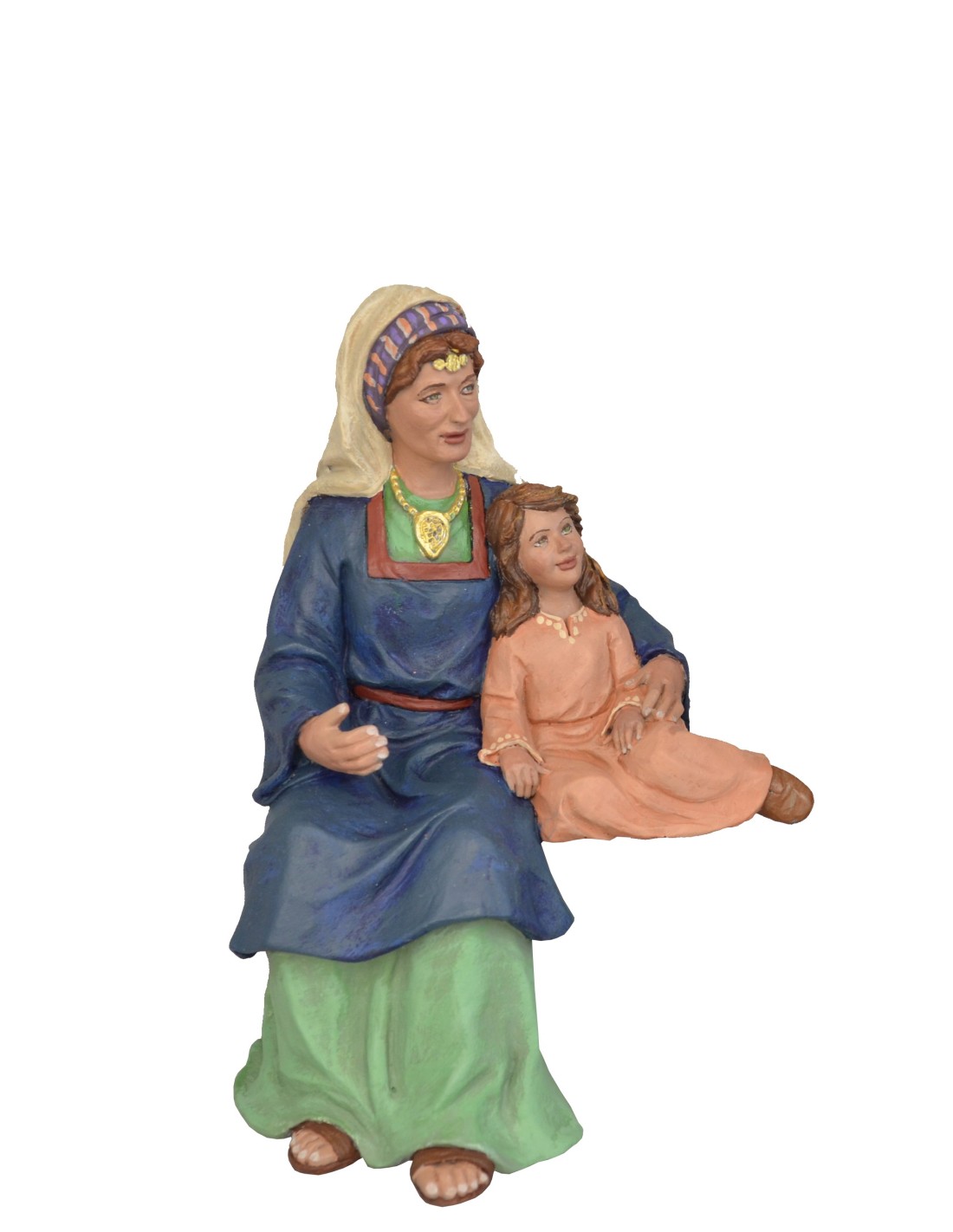 12028 Pastora sentada con niña - Fabricado en pasta cerámica Italiana.